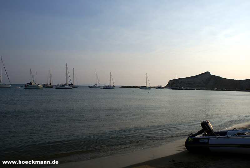 Blick vom Strand auf die Segelyachten vor Erikoussa - 2008